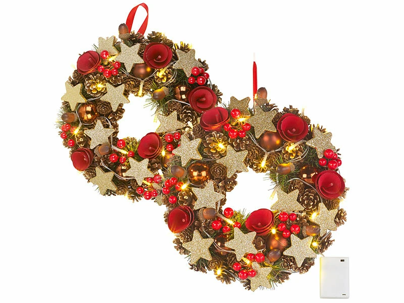 - Lot de 2 couronnes de Noël à LED sans fil, par Bitesta