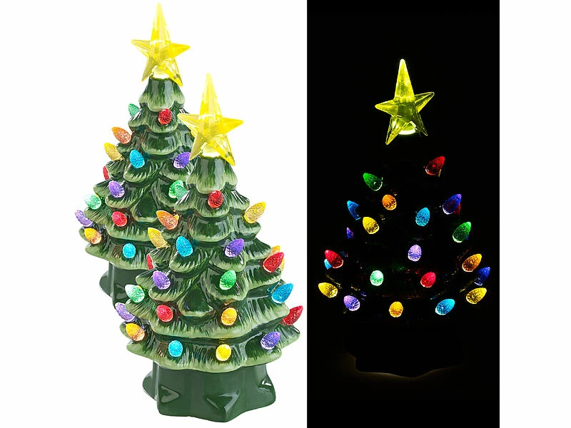 - Lot de 2 sapins de Noël à LED 19 cm en céramique, par Infactory