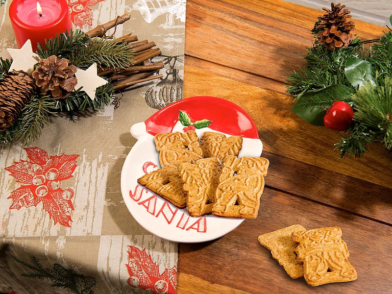 Que serait Noël sans de délicieux biscuits ? Remplissez l’assiette de petits gâteaux pour les fêtes de fin d’année. Grâce à son motif en forme de Père Noël, l’assiette peut même être utilisée comme décoration !