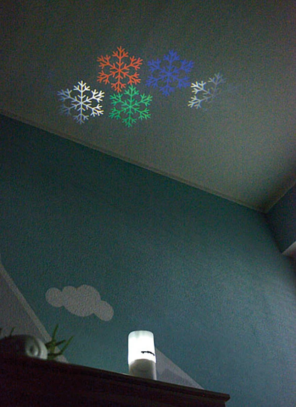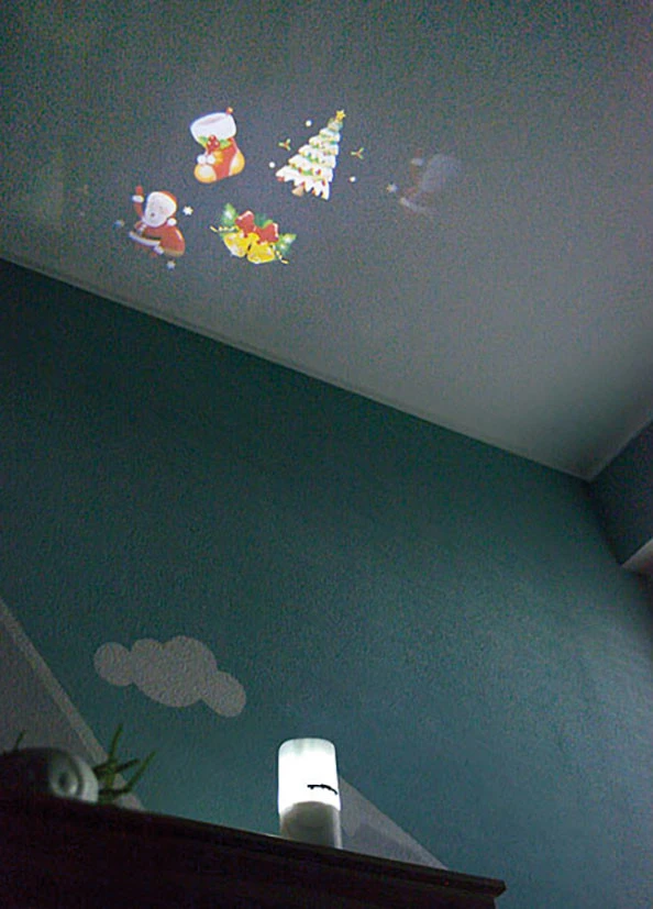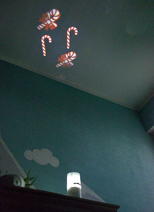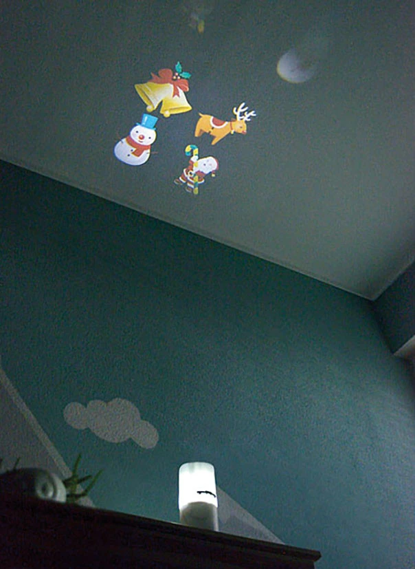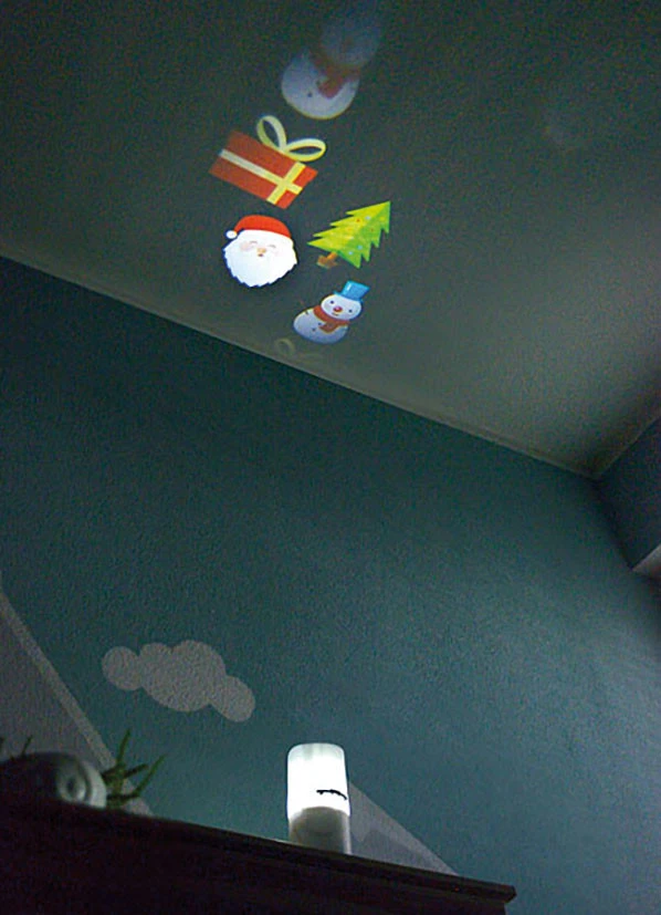 - Pour une ambiance festive : projection de motifs de Noël au plafond