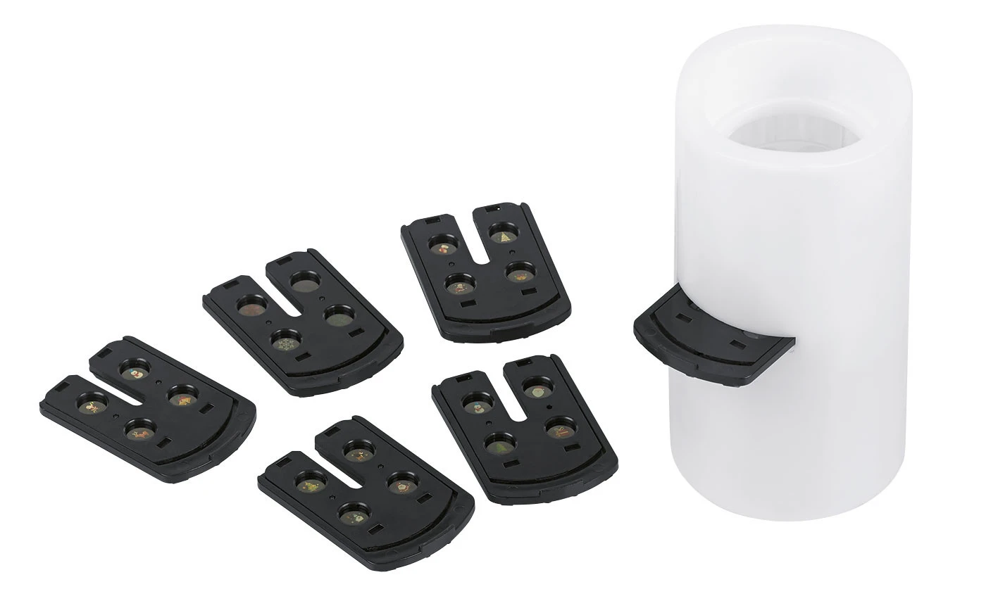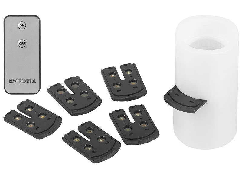 - Contenu : bougie à LED avec projection, 6 diapositives à motifs, télécommande et mode d’emploi en français