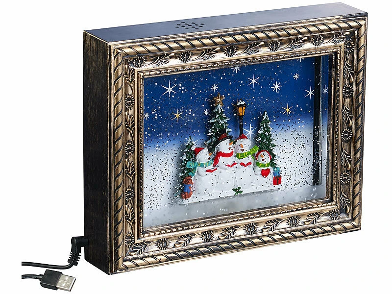 - Cadre de Noël « Bonhommes de neige » avec LED, musique et neige de la marque Infactory