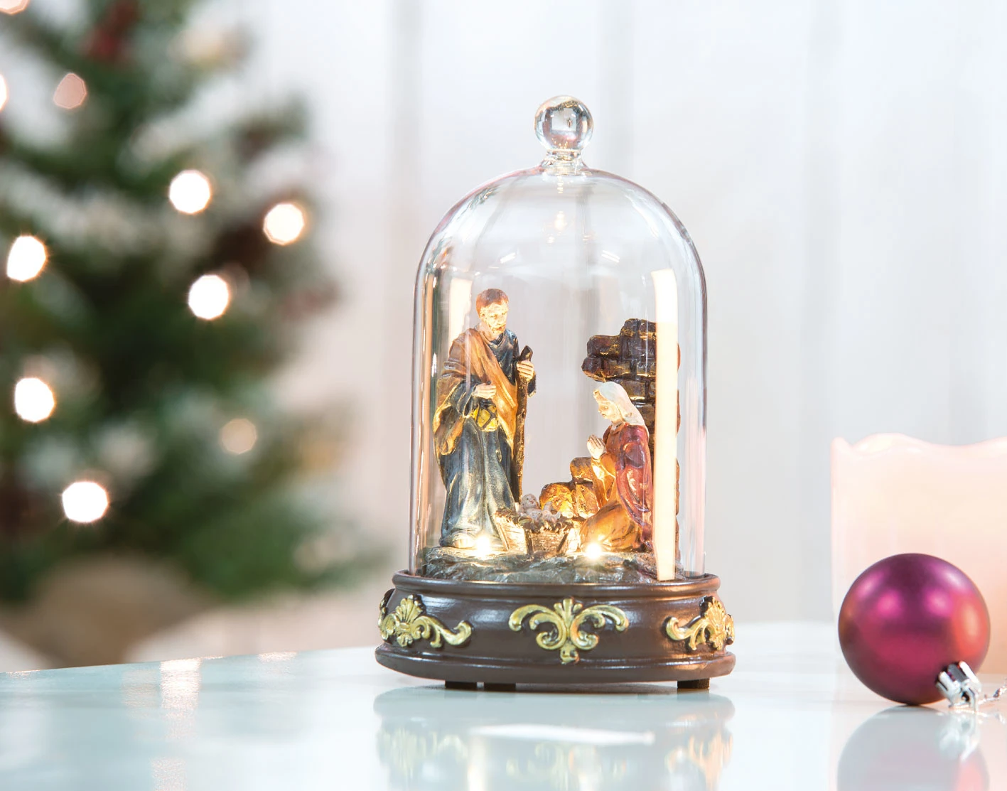 Crèche de Noël à LED sous cloche en verre de 19,95 € à 36,95 €