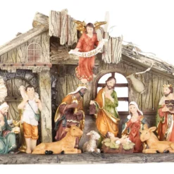 Pearl Crèche De Noël En Polyrésine Avec 11 Figurines Peintes à La Main