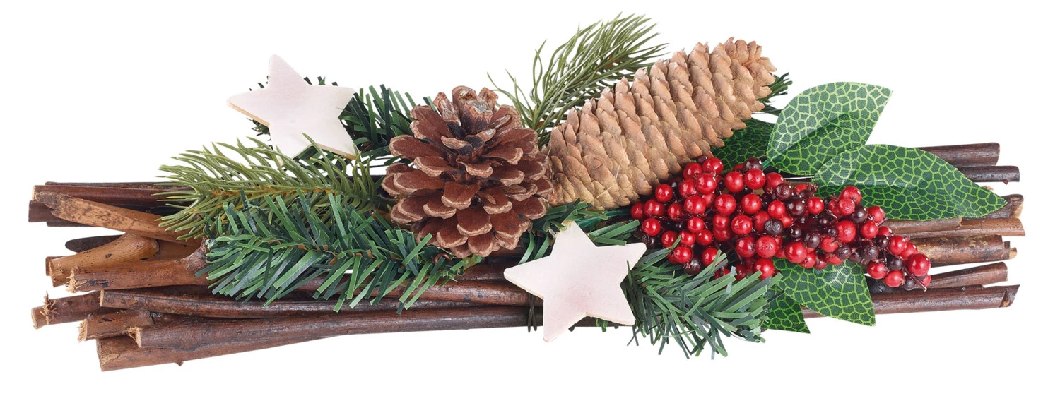 Décorée de petites étoiles en bois, de baies et feuilles aussi vraies que nature, et de véritables pommes de pin, cette décoration de table Britesta apporte une touche naturelle et chaleureuse à votre pièce.