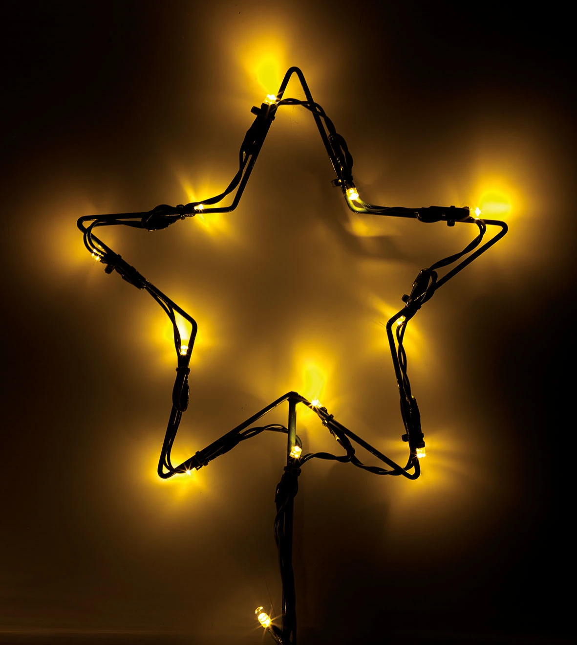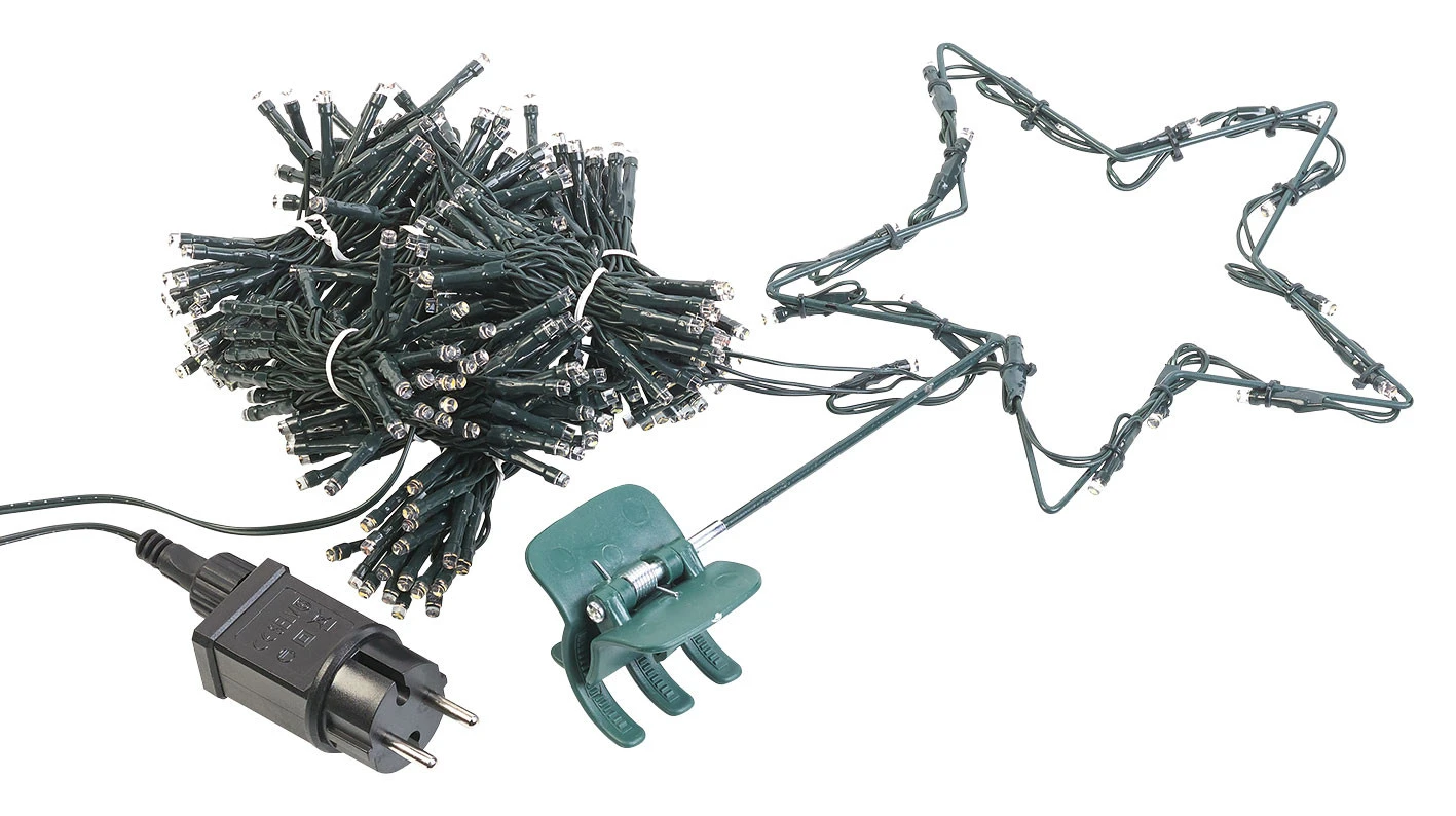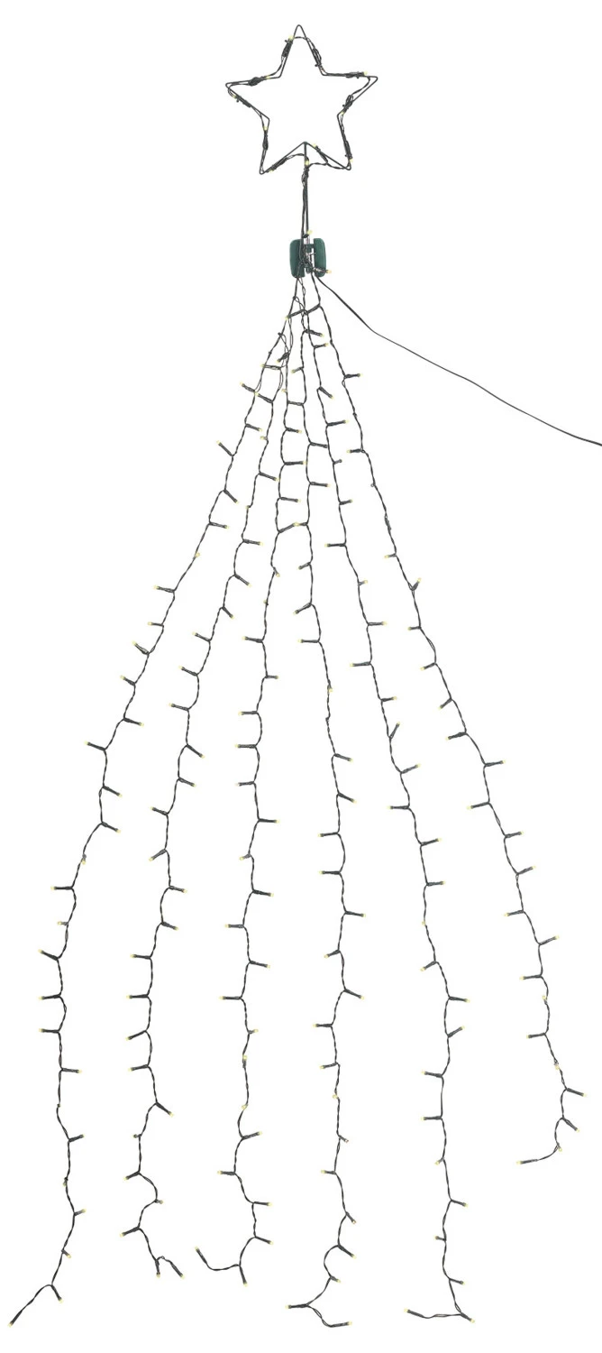 Il vous suffit d’accrocher l’anneau de support sur la cime de l’arbre, de fixer l’étoile de Noël grâce à la pince crocodile puis de laisser pendre sur le sapin les 6 fils composant la guirlande. Le tour est joué !