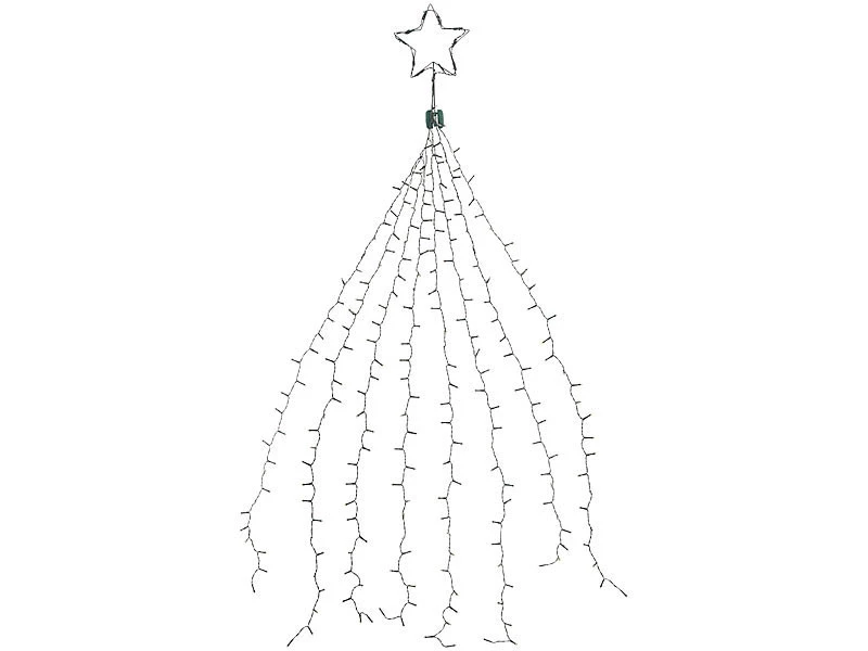 Il vous suffit d’accrocher l’anneau de support sur la cime de l’arbre, de fixer l’étoile de Noël grâce à la pince crocodile puis de laisser pendre sur le sapin les 8 fils composant la guirlande. Le tour est joué !