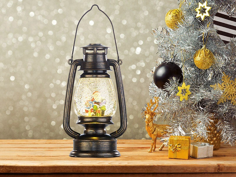 - Lampe tempête à LED de Noël avec neige tourbillonnante, par Infactory