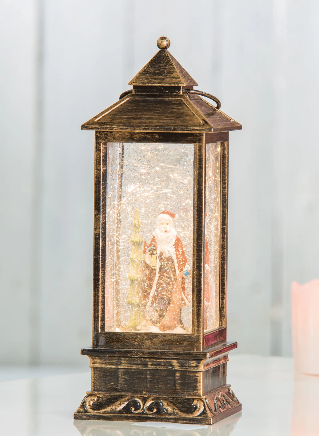 - Lanterne décorative à quatre faces avec eau et flocons scintillants
