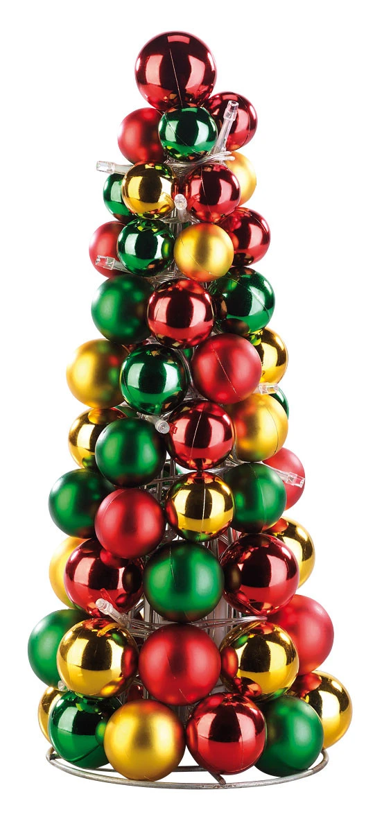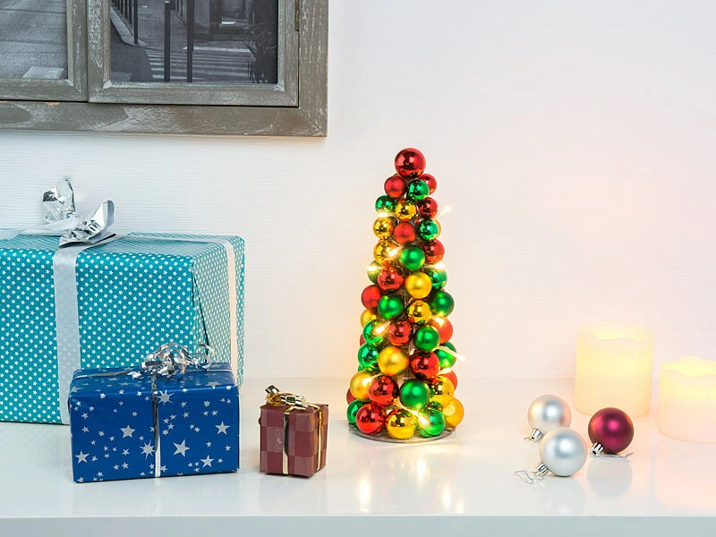 Décorez de façon originale, mais néanmoins élégante, votre salon à l’approche des fêtes de fin d’année. La pyramide, entièrement composée de boules de Noël mates et brillantes, scintille doucement d’une agréable lumière blanc chaud.